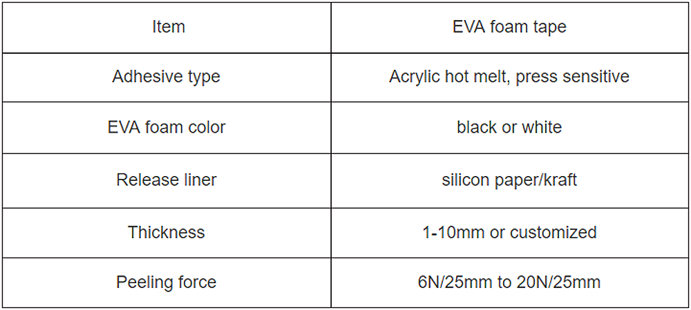 1mm 6mm thick adhesive acrylic heat resistant eva double sided foam tape