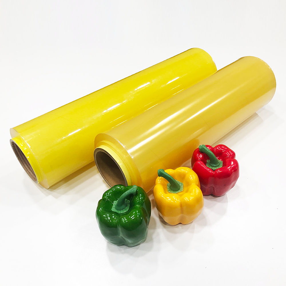 Green and Environmental Protection PVC Cling Flim due to its adequate softness, stickiness and elongation, can be well stretched over the food tightly without the trouble of sticking up and bad wrapping. suitable for both hand and machine wrapping.