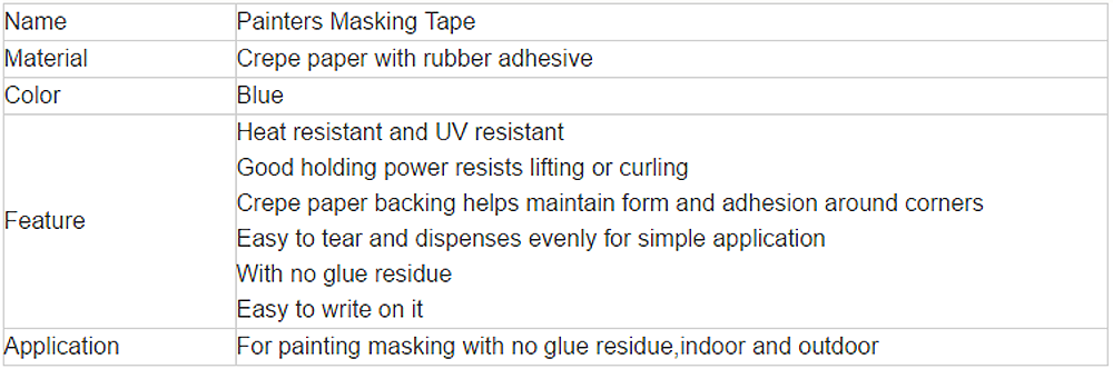 (1) General purpose masking tape:Used for fuimitue,interior,decoration,painting.